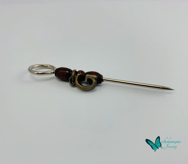 Handy cigar holder with wooden beads and your choice of one initial on a steel nickel plated poker.